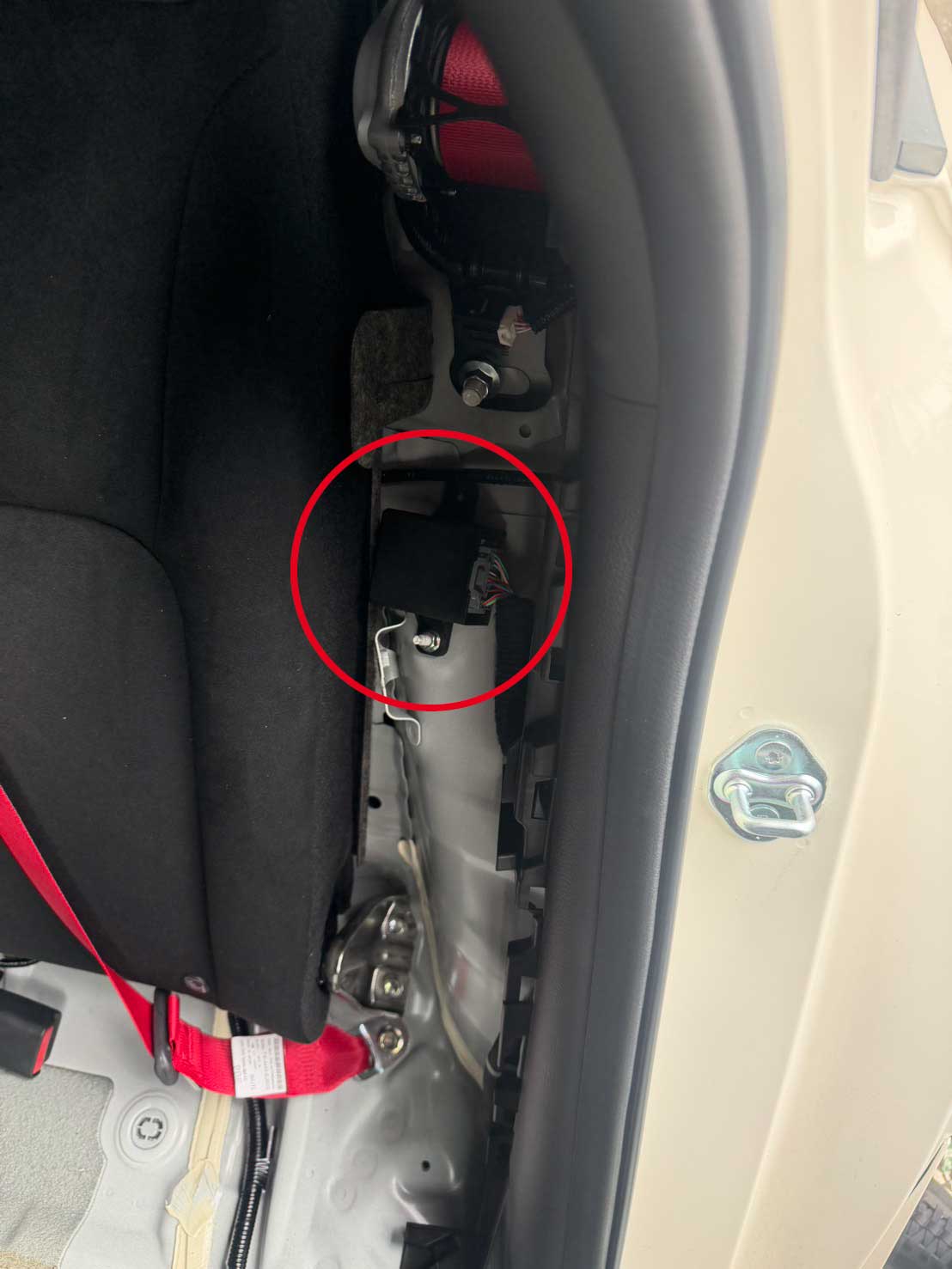 取付はリアシート座面を取り外して、左リアのパネルを外します。純正ADSのECUを外してカプラーオンで完了します。座面シートの取り外しがちょっとやっかいかも。